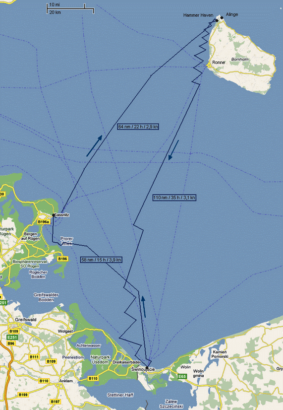 Loď Easy (typ Halcyon 27 o délce 823 cm) jsem si půjčil v jachtařském klubu Cztery Wiatry ve Svinoústí, a tamtéž ji také vrátil :-).